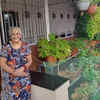 Subbalakshmi Narayan is 94 years old. She is from Kalpathy and has lived a big part of her life in Mumbai. Flowerpots on shelves and hanging from the eves of her roof are bursting with flowers. She enjoys singing, she said.