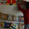 Shweta Singh gets her children to play word games in the library. The children sit in a circle on the durrie and roll a handful of dice. The dice have a letter of the alphabet on each side. Whatever letter faces up, the children have to say out a word beginning with that letter.