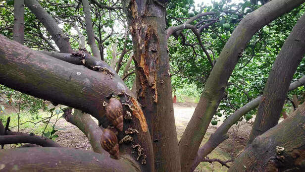 घोंघे मौसंबी के पेड़ों को भी संक्रमित करते हैं