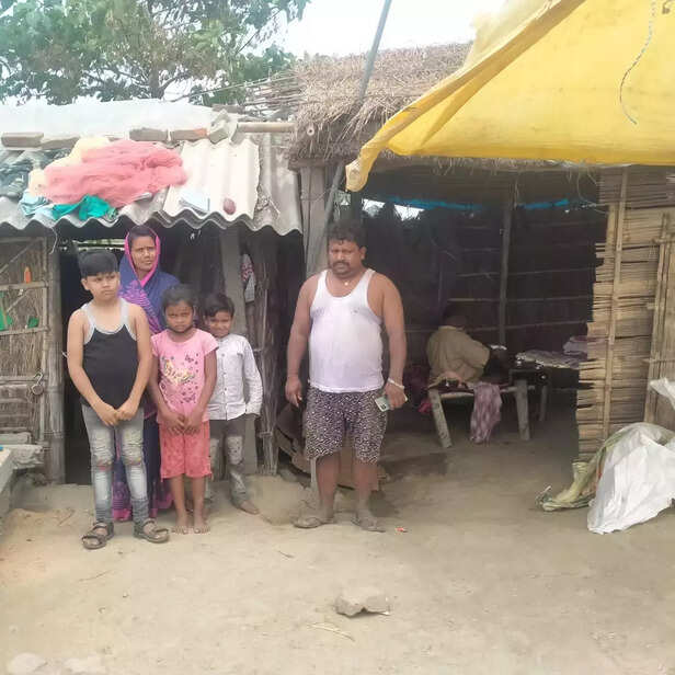 सुरेश कुमार अपनी पत्नी और बच्चों के साथ बिहार के अपने गाँव में। उन्होंने कहा, "इससे पहले कि मैं अपने रिक्शा के लोन की किस्त और दूसरे कर्जे चुका पाता, तब तक दूसरे लॉकडाउन की घोषणा कर दी गई।"
