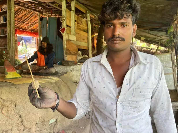 तैयार हिंगोट दिखाता गौतमपुर का एक युवक। फोटो श्याम दांगी