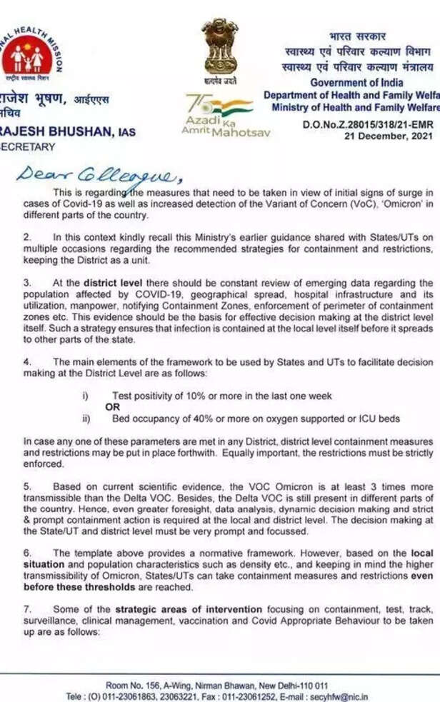 चिट्ठी में उन उपायों पर प्रकाश डाला गया है, जिन्हें देश के विभिन्न हिस्सों में कोविड-19 के मामलों में वृद्धि के शुरुआती संकेतों के साथ-साथ चिंता बढ़ाने वाले स्वरूप ओमिक्रॉन का पता लगाने के लिए उठाए जाने की आवश्यकता है।