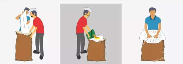 सबसे पहले एक जूट के बैग में सेव ग्रेन बैग को रखते हैं, उसके बाद उसमें अनाज को उस बोरे में रखते हैं। इसके बाद देखते हैं कि बैग से सारी हवा निकल जाए, इसके बाद सेव ग्रेन बैग को टाइट बांध दें, बस दो साल के लिए हो गया अनाज सुरक्षित।
