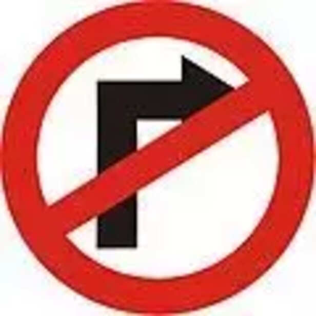 चिन्ह में दाएं दिशा में में जाने वाले तीर को लाल पट्टी से काटा गया है, इसका अर्थ है कि सड़क पर दाईं दिशा में नहीं अपना वाहन नहीं मोड़ना है।