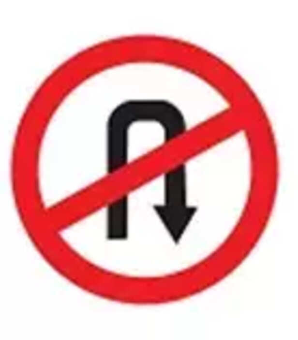 चिन्ह में अंग्रेजी में यू (U) का उल्टा निशान बना हुआ है और निशान को काटा गया है। इसका अर्थ है कि सड़क पर गाड़ी चलाते हुए आप यू-टर्न नहीं ले सकते हैं यानी यहां मोड़ लेने के लिए पर्याप्त जगह नहीं है इसलिए आगे वापस मुड़ना मना है।