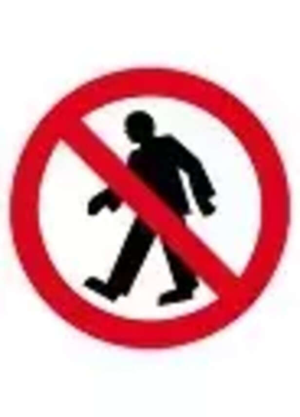 चिन्ह में पैदल जाते हुए व्यक्ति पर लाल निशान लगा है, इसका अर्थ है कि इस सड़क पर पैदल चलने पर रोक है।