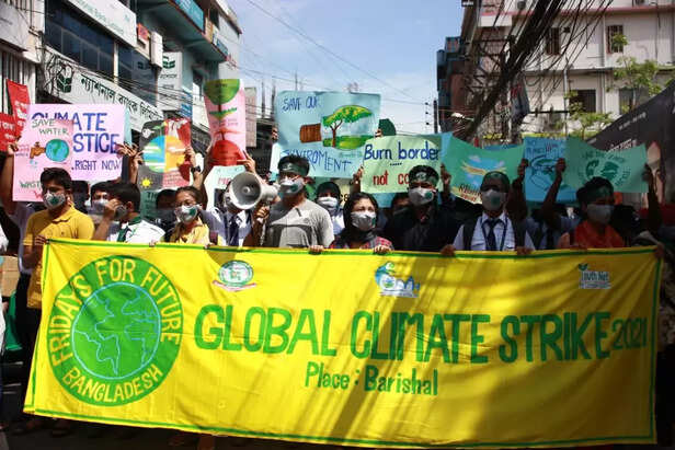 बांग्लादेश के बारिसल मंडल मुख्यालय में युवा जलवायु कार्यकर्ताओं की पहल पर वैश्विक जलवायु हड़ताल।