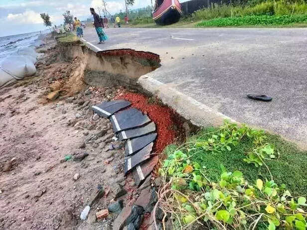 चक्रवात सितरंग से क्षतिग्रस्त कॉक्स बाजार के टेकनाफ में मरीन ड्राइव रोड। फोटो: अरेंजमेंट
