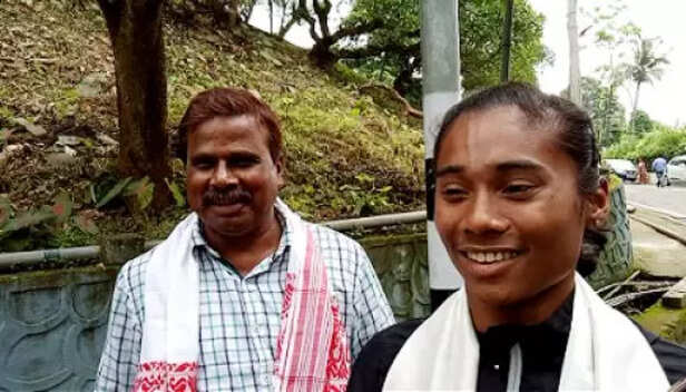 असम के अपने घर में मां के हाथ का खाना खाती हिमा दास