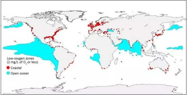 इसके अलावा गर्म पानी में ऑक्सीजन घोलने की क्षमता भी घट जाती है। इसका मतलब गर्म पानी वाले इलाकों में रहने वाले समुद्री जीवों को ऑक्सजीन पाने के लिए पहले से ज्यादा जद्दोजहद करनी होगी। इस तरह खुले समुद्र में भी डेड जोन वाले इलाके बढ़ रहे हैं।