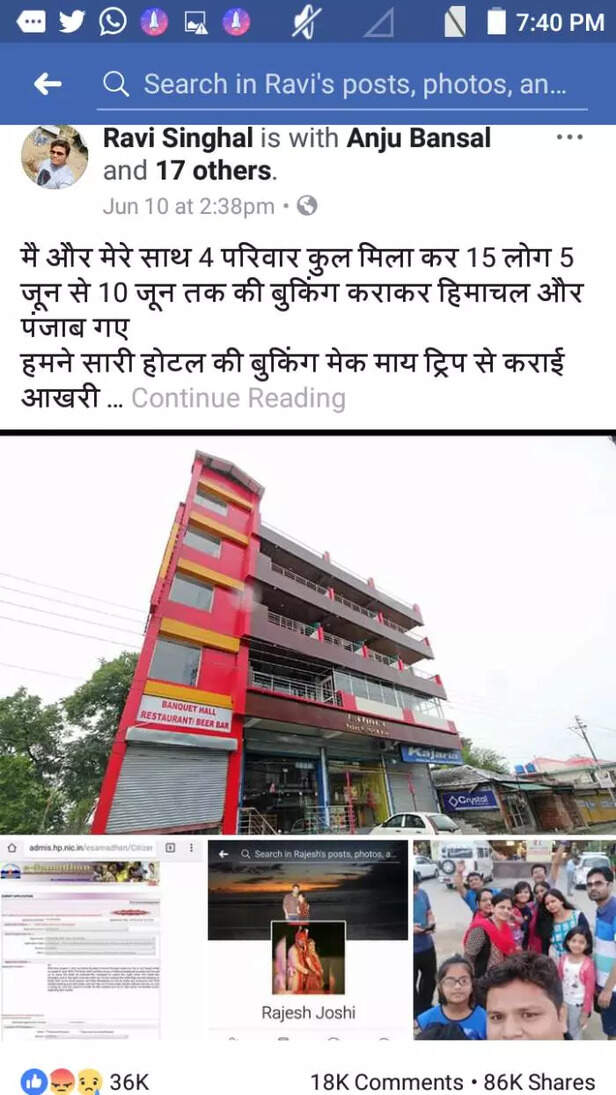 रवि ने बताया की जिस दिन हिमांचल प्रदेश के होटल रेड कारपेट में ये घटना हुई उस दिन बच्चे काफी डरे हुए थे ,रात में ढाई बजे तक "मेक माय ट्रिप कंपनी "के अधिकारी सौरभ से बात हुई।उन्होंने 10 जून का बुकिंग का रिफंड देने के साथ मेक माय ट्रिप पर जाकर साईट पर उपलब्ध होटलों में से कोई होटल चुनने की सलाह दी और सुबह 7 बजे काल बैक करने को बोलकर फोन काट दिया।