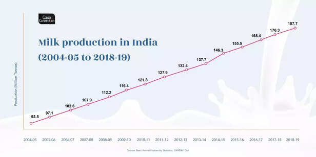 विडंबना है कि एक तरफ ग्रामीण घरों में मवेशी तेजी से गायब हो रहे हैं, दूसरी तरफ देश में दूध का उत्पादन अब तक के उच्च स्तर पर है। राष्ट्रीय डेयरी विकास बोर्ड के अनुसार भारत में दूध का उत्पादन वर्ष 1991-92 में 5.56 करोड़ टन था जो 2018-19 में बढ़कर 18.77 करोड़ टन हो गया। यह 2019-20 में बढ़कर 19.84 करोड़ टन हो गया। वर्ष 2030 में दूध की मांग 26.65 करोड़ टन तक पहुंचने की उम्मीद है।