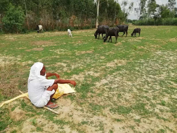 जिस जगह प्रसाद एकांत में पेड़ के नीचे बैठकर अपने बचपन को याद कर रहे थे, वहां से लगभग 85 किलोमीटर दूर गिरीश पाल सिंह यादव चर रहीं अपनी बची खुची पांच गायों को उदासीनता से देख रहे हैं।