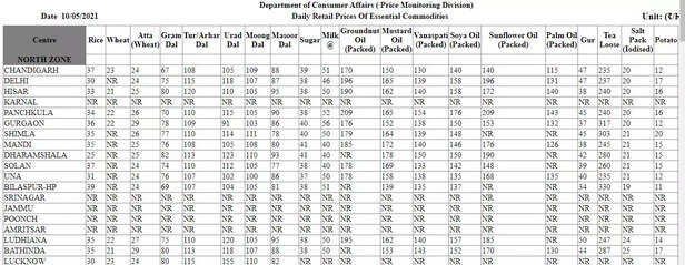 10 मई को खाद्य वस्तुओं की खुदरा कीमत। (साभार-उपभोक्ता मामले, खाद्य और सार्वजनिक वितरण मंत्रालय)