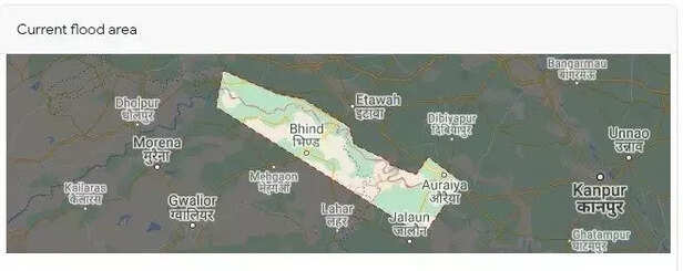 भिंड का बाढ़ प्रभावित इलाका, एमपी का ये जिला, यूपी के जालौन, औरैया और इटावा से जुड़ा हैं, जो इन दिनों भीषण बाढ़ की चपेट में हैं। फोटो- साभार गूगल शिवराज ने बनाई टॉस्क फोर्स, जिनके घर टूटे देंगे पीएम आवास