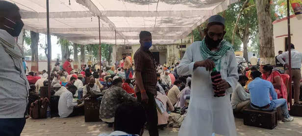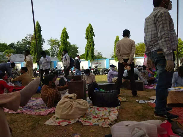 सीतापुर जिले के रामपुर मथुरा ब्लॉक में चौथे चरण के मतदान से एक दिन पहले अध्यापकों की भीड़। फोटो: अरेंजमेंट       इस बीच चुनाव ड्यूटी में लगाए गए 135 शिक्षकों, शिक्षा मित्र और जांचकर्ताओं की मौत को लेकर एक राष्ट्रीय अखबार में प्रकाशित खबर पर संज्ञान लेते हुए 27 अप्रैल को इलाहाबाद उच्च न्यायालय ने उत्तर प्रदेश राज्य निर्वाचन आयोग को कारण बताओ नोटिस जारी किया है। हाई कोर्ट ने कोविड प्रोटोकॉल का पालन नहीं करने और इसके उल्लंघन करने वाले अधिकारियों के खिलाफ कार्रवाई क्यों नहीं की जाए।