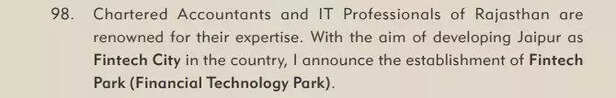 अशोक गहलोत सरकार ने बजट में की थी फिनटेक पार्क की घोषणा।       फिनटेक पार्क की मुख्यमंत्री ने की बजट में घोषणा