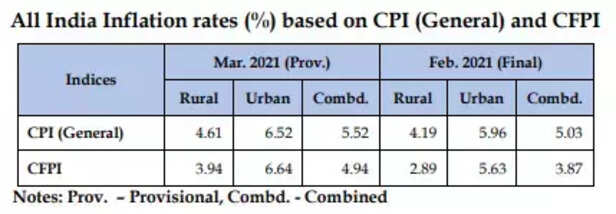 मार्च में खाद्य महंगाई दर शहरी इलाकों में 6.64 फीसदी और ग्रामीण इलाकों में 3.94 फीसदी रही जबकि फरवरी में गांवों में खाद्य महंगाई दर 2.89 फीसदी थी, जबकि जनवरी 2021 में ये दर 1.11 फीसदी थी। बाकी चीजों के दाम भी शहरों में 6.52 फीसदी और गांवों में 4.61 फीसदी की रफ्तार से बढ़े हैं।