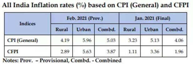 फरवरी महीने की महंगाई दर       आपको बता दें कि मार्च लगातार चौथा महीना है, जब खुदरा महंगाई रिजर्व बैंक ऑफ इंडिया के अनुमान के दायरे में है। आरबीआई ने अगले 5 साल के लिए खुदरा महंगाई दर को 4% से 6% के बीच रखने का लक्ष्य रखा है।
