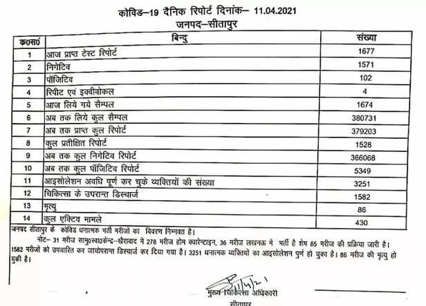 अपर मुख्य चिकित्साधिकारी डॉ पी के सिंह ने जानकारी देते हुए बताया कि सीतापुर जिले में 45 वर्ष से अधिक के आयु वाले लोगों का लक्ष्य 332,603 है। वही हेल्थ केयर वर्कर का लक्ष्य 16,237 है, जबकि फ्रंट लाइन वर्करों का लक्ष्य 15,225 है। 8 अप्रैल तक जिले में 45 वर्ष से अधिक की आयु वाले 104,191 व्यक्तियों को पहली खुराक दी जा चुकी है, जो तय लक्ष्य का 31 फीसदी है।