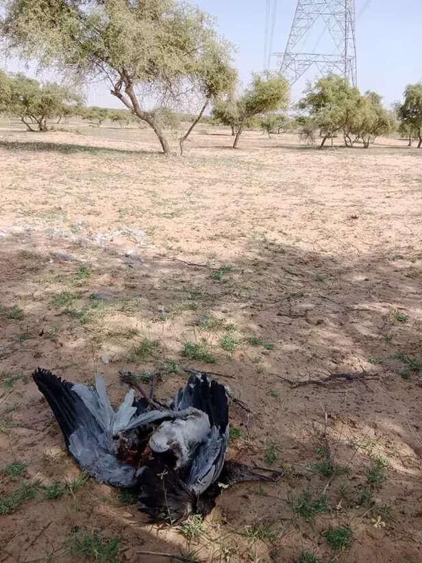 ओरण में पड़ा मृत पक्षी       हाईटेंशन तार बने पक्षियों के जान के दुश्मन