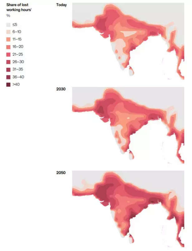 दिन में काम के घंटों में औसत नुकसान 2030 तक सकल घरेलू उत्पाद का 2.5 प्रतिशत से 4.5 प्रतिशत सालाना जोखिम में डाल सकता है। यह लगभग 150-250 अरब डॉलर के बराबर होगा। रिपोर्ट में चेतावनी दी गई है कि अगर स्थिति बिगड़ती रही तो भारत में जीडीपी का प्रतिदिन 52,420 मिलियन रुपये का नुकसान होगा, जबकि 2030 तक प्रति घंटा नुकसान 2.2 मिलियन रुपये होगा।