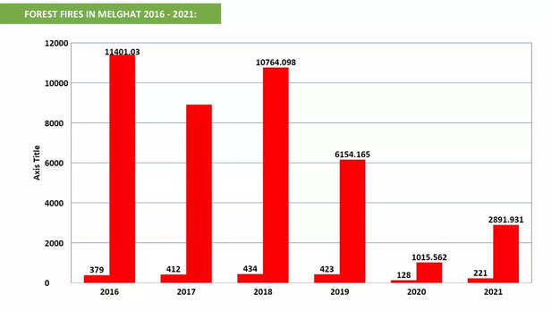 मेलघाट टाइगर रिजर्व के अधिकारियों द्वारा उपलब्ध कराए गए आंकड़ों के अनुसार जंगल में आग लगने की संख्या 2016 में 379 थी, जो घटकर 2021 में 221 रह गई है और जले हुए वन क्षेत्रों में काफी कमी आई है।
