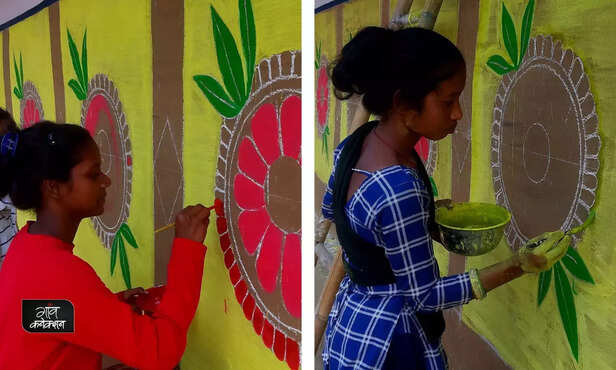 ग्रामीण ने बताया कि सभी निवासी संथाल आदिवासी संस्कृति और परंपरा को दर्शाते हुए अपने घरों को सोहराई कला से सजाते हैं। “हम अपनी दीवारों को जंगल की उपज और चावल के आटे से बने प्राकृतिक रंगों से रंगते हैं।” धनो मर्दी ने सोना मर्दी की ओर इशारा करते हुए कहा, जो अपने भाइयों और बहनों के साथ अपनी दीवारों पर फूलों, मवेशियों, पक्षियों को सावधानीपूर्वक चित्रित करती हैं। संथाली परंपराओं के लिए वन और वन्य जीवन प्रिय हैं।