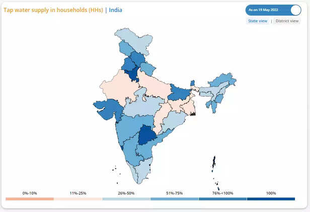 जल जीवन मिशन के आंकड़ों से पता चलता है कि 19 मई, 2022 तक 27.59 प्रतिशत ग्रामीण परिवारों के पास नल के पानी के कनेक्शन थे।