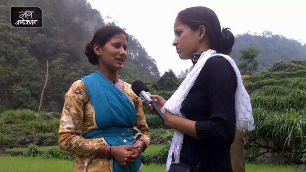 खेत में काम कर रही स्थानीय महिलाओं से बातचीत को रिकॉर्ड करती आरती बिष्ट। यह तस्वीर तब ली गई थी जब आरती ने अपनी रेडियो यात्रा शुरू ही की थी। आज वह हेंवलवाणी में एक लोकप्रिय रिपोर्टर हैं और अपने काम में माहिर हैं। वह रेडियो स्टेशन का प्रबंधन भी करती हैं।