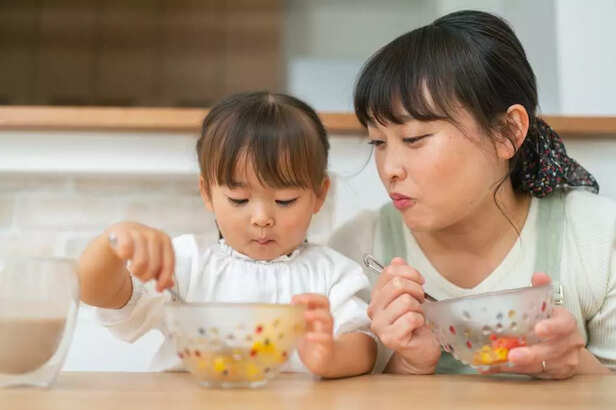 Allow your baby to explore self-feeding. Offer them a spoon to hold and practice with, even if it results in messy mealtimes.